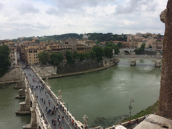 南宋辛弃疾有词曰:何处望神州,满眼风光北固楼,千古兴亡多少事?悠悠,不尽长江滚滚流。罗马无大川,只有蜿蜒的静静流淌,记录了罗马两千八百年的沧桑。与辛弃疾同代的罗马人若登临圣天使堡,俯看台伯河,眺望,一定也会发出千古兴亡古帝国的感叹。