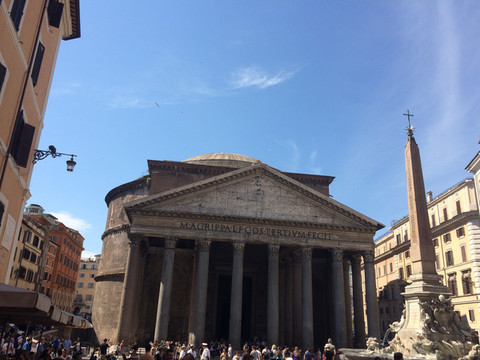 万神殿是至今完整保存的罗马帝国时期建筑,始建于公元前27-25年罗马帝国首任皇帝屋大维时代建造,用以供奉奥林匹亚山上诸神,是奥古斯都时期的经典建筑。