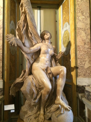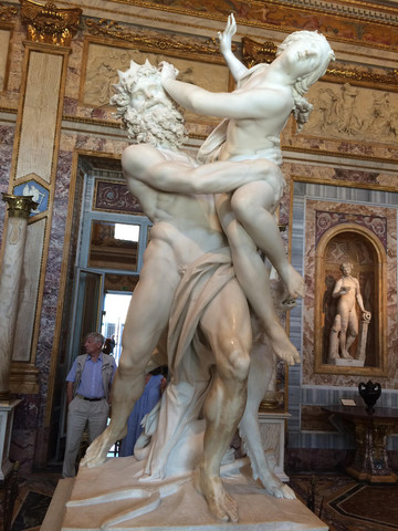 贝尼尼雕塑作品《普拉东劫持珀耳塞福涅》,取材于希腊神话故事,普拉东把珀耳塞福涅劫持入冥界,孔武有力的普拉东和反抗的珀耳塞福涅正在试图挣脱他的束缚,栩栩如生充满动感