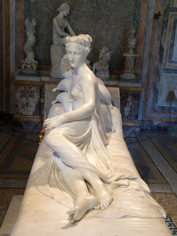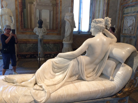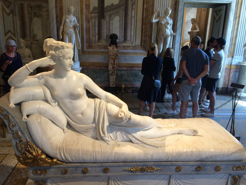 大理石雕塑《帕奥莉娜·波拿巴》,十九世纪初雕塑家安东尼奥·卡诺瓦作品,为拿破仑的妹妹帕奥莉娜·波拿巴所作,也是以帕奥莉娜本人为模特