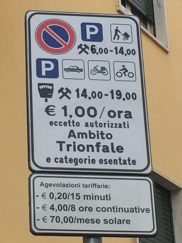 停车标识牌,意大利的自助收费机界面简单易于操作(法国的有点复杂)