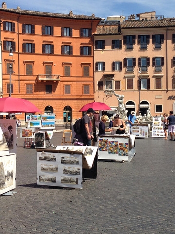 纳沃纳广场位于罗马的中心,不但游客云集,也是街头艺术家和小商贩的一处宝地,从早到晚都是一片喧哗热闹的场面。广场在万神殿和鲜花广场之间,到两者步行都是几分钟路程,游览路线可以从万神殿到纳沃纳广场,再到鲜花广场,也可以反向行走。