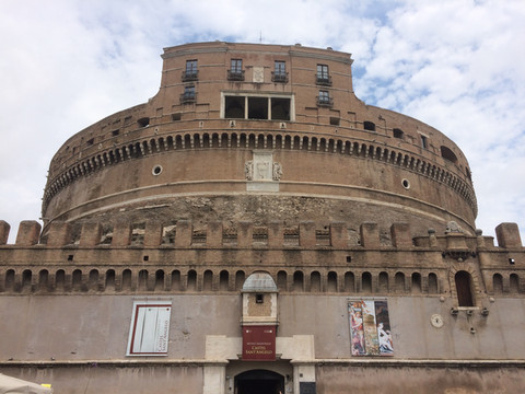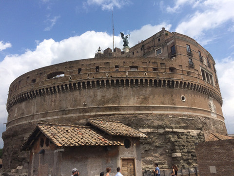 台伯河边的圣天使堡位于罗马古城最西端,始建于公元139年,罗马帝国哈德良皇帝亲自设计和督建,最初的作用是作为自己和帝国皇族的陵墓;用途又随时代变迁而改变,曾经作为过抵抗蛮族的军事要塞、关押囚犯的监狱、教皇的避难所和住所,城堡也随之不断加高。
