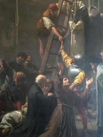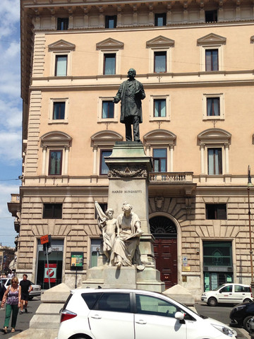 广场中心树立着著名哲学家布鲁诺的雕像,1600年,布鲁诺因宣传日心说(地球是围着太阳转动的,而非太阳围着地球转)而被罗马教会烧死在广场中央,中世纪的宗教审判果然恐怖。