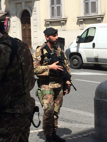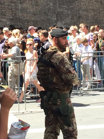 感觉意大利的安保比法国好,每个景点和地铁站都有持枪军人,住宿看护照还有照相,法国就没有这么严。