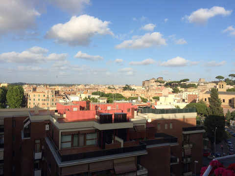 这次女儿给我们订的住处出行、购物和就餐都非常方便。住处在梵蒂冈城背后不远,步行十分钟就可到达梵蒂冈博物馆,阳台上就可看到圣彼得大教堂的圆顶,听到从教堂传来的钟声;