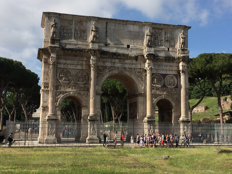 顾名思义,凯旋门是为君士坦丁大帝的功绩而建,公元312年君士坦丁大帝击败对手马克森提皇帝,再次统一了处于分裂的罗马帝国。但随后却把帝国的重心逐步东移,在现在的伊斯坦布尔建成了东罗马帝国的中心拜占庭。