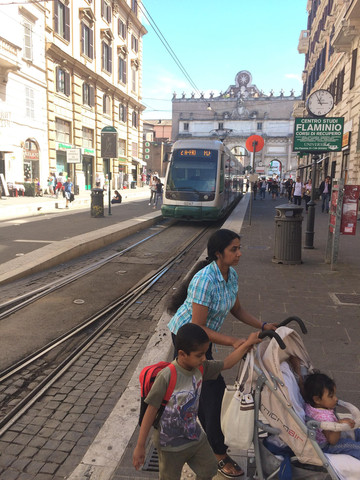 地面公交系统的公交车站点比较多,公交车路数也多,但是每班间隔的时间较长,特别是在城郊有时要等上二十多分钟;罗马大街小巷都能通车,交通组织与管理看来还比较有效,虽然大部分街道不宽,有时略显拥挤,但总体还是比较顺畅,没遇过堵车情况;另外还有为数不多的几路有轨电车和几路直接与地铁相通的区间小火车;到远郊还有几路FL专线,这要到火车站买票转乘,到机场和蒂沃利就可乘这种专线火车。