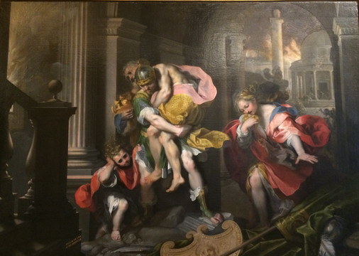 贝尼尼雕塑作品《逃离特洛伊城》,取材于希腊人攻破特洛伊城的传说