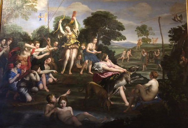 《狄安娜》是画家多梅尼基诺1617年的作品。狩猎女神和仙女们在举行射箭比赛,