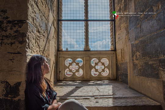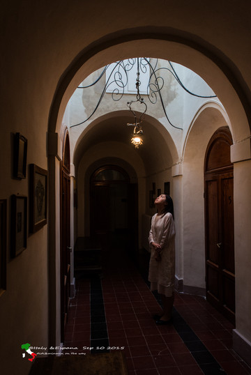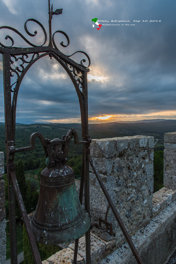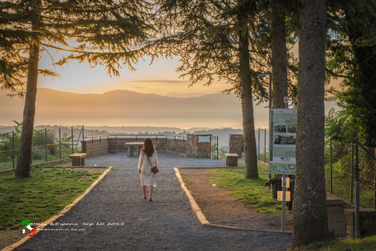 赶到日落前到达了古堡。接待我们的是位意大利美女,我们说想到城堡上看日落,她说她都没上去过,他比较害怕爬楼,我们还是坚决的上去了,在古堡的另一侧有个小门打开钥匙就是楼梯。激动的里面忘记拍了,里面都是些旧物,楼梯上好多蜘蛛网。美女爬到一半下去了。我们爬到城堡上面全是鸽子屎。