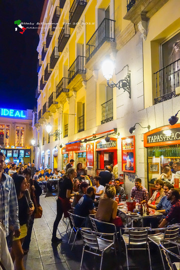 夜晚的马德里变成了一个露天的大酒吧,穿街走巷,每个角落都有酒吧,那规模和气势,什么美食街美食城跟它比简直弱爆!喝酒吃饭的人群是一波接一波,我大北京来的见多识广的小两口直接看蒙了!感情白天大街上没人,是猫着为了夜里出来撒欢啊!什么是不夜城,什么是美食街,来马德里看看才知道!