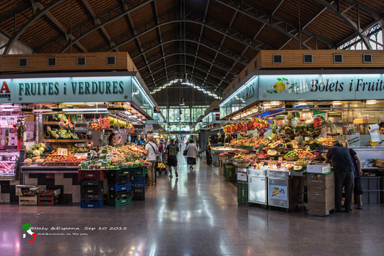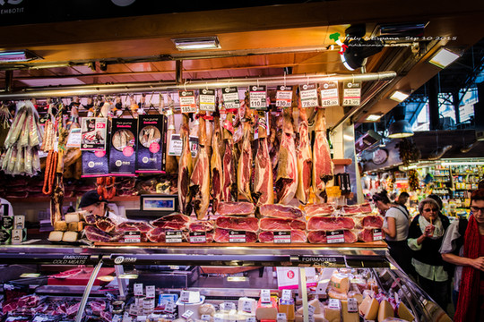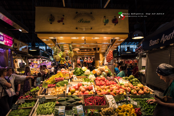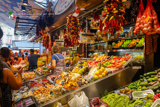 走走停停,路过了一家菜市场,进去体察一下巴塞罗那的民情。菜市场绝对是一个城市艺术品位最朴素和直接的体现,五颜六色的蔬菜水果摆放成诱人的形状,就算不买只看,内心也是满满的幸福感。