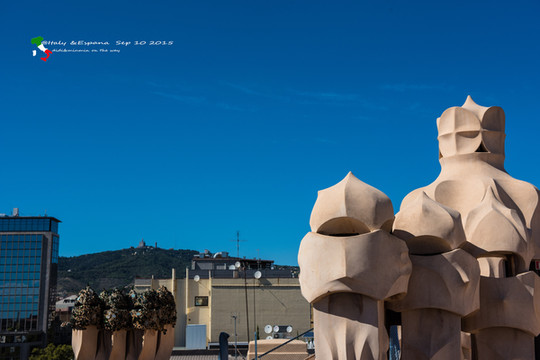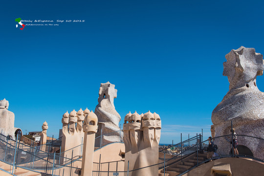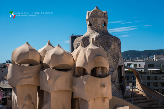 我们提前在网上购买了米拉之家等门票,按照预定的时间进去关参观。被高迪的建筑物深深吸引,惊叹怎么会有如此的想象力,哪怕是在今天,这样的建筑也让人叹为观止。米拉之家的顶楼上,设计独特的烟囱是几个外星人形状的雕塑,如果你喜欢的话,可以在米拉之家一层的精品店里购买造型一样的工艺品。