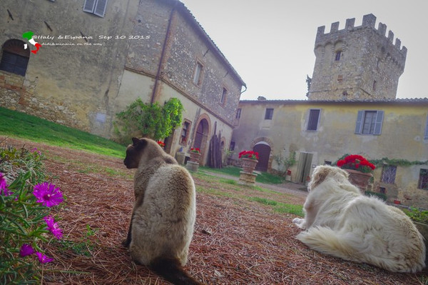 古堡的里院有好多猫,还有两只大金毛,都很安静,呆呆的坐在那。