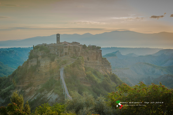 为了不耽误去天空之城看夕阳,没敢耽搁太久我们便又出发了。从罗马到天空之城的的道路大多是转山的坡道,到达天空之城下的小镇已经是下午五点多了,正好赶上看夕阳。攻略是老公做的,一直听他念叨天空之城神马的没往心里去,但当亲眼看到这个坐落在山顶的古堡小镇时,还真的被惊艳到了!正所谓美是需要付出代价的,通往天空之城的路正印证了这一点,感觉像极了长城上的阶梯,又长又陡,不费点力气还真爬不上去。不识庐山真面目,只缘身在此山中。当你真正置身于天空之城,愿望的神秘感一下子荡然无存,美还是美,但缺少了不少神韵、仙气。镇子不大,里里外外转一遍一个小时足够,里面也有些居民开的民宿和饭馆,但听说价格不菲,所以我们没有住在上面,而是选择了山脚下的镇子住了间民宿。