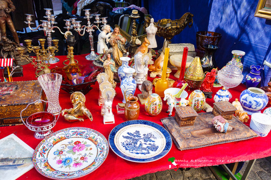 恰逢周日,第一站我们选择离家不远的埃尔拉斯特洛跳蚤市场,感受一下老马德里淘货的气氛。说是跳蚤市场,跟中国一样,一半是各种小商品、地摊货,一半是老物件、小玩意,男女老少来到这里,几乎都可以找到自己的兴趣点。我们转了一上午,淘了几件老摆设,价钱不贵,关键是很心仪。