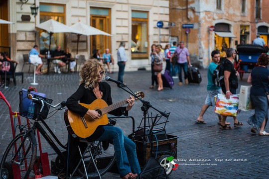 好喜欢罗马街头随处可见的艺人,唱的、弹的、跳的、画的,个个都是艺术家,都活得好洒脱。话说已经逛到忘了吃饭这件事,天都黑了才发现自己饿透了,街角偶遇了家百年老店,看着就知道便宜不了,但省了一天,奢侈一顿也没什么大不了。