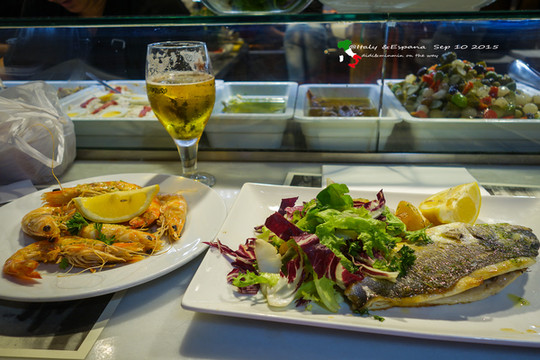 不知不觉又走到了Ramblas步行街,正午时分路过了巴塞罗那中心市场博盖里市场,这里号称世界最美集市,进去闲逛一下,吃了个午饭,新鲜的食材还是很好的。