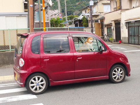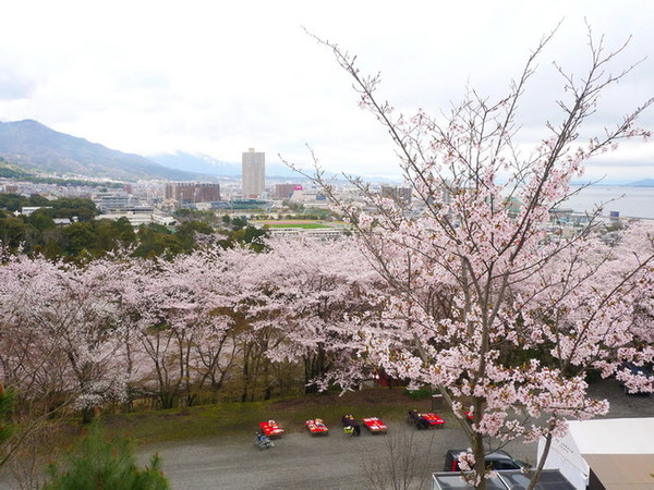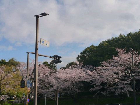 路过的主干道上的一个小神社兼停车场,樱花正盛。