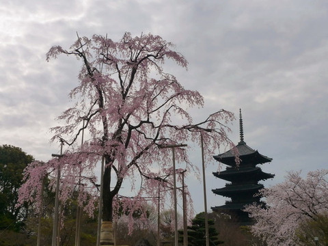 但要近距离看到东寺的这棵垂樱则要购买600日元的门票,透过栏杆看了眼貌似也没什么特别,天气又不好,所以没有进去,只是在栏杆外拍了张照