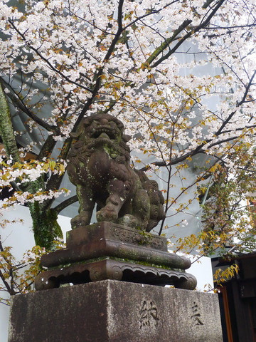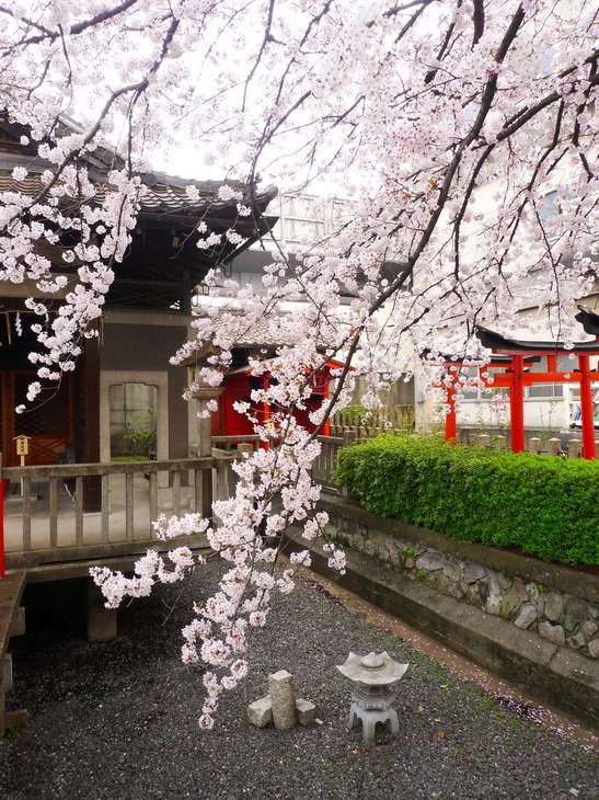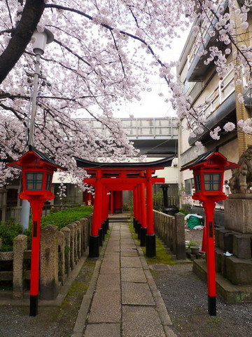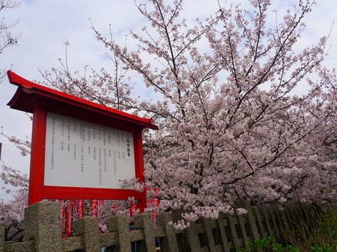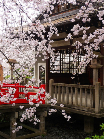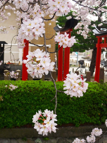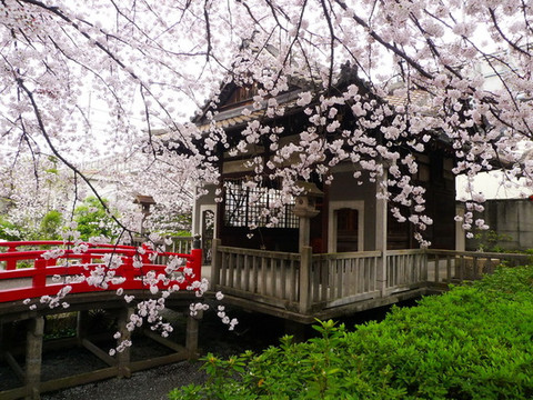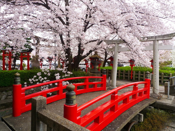 里面却是别有洞天,神社虽小但精致,红瓦配粉樱