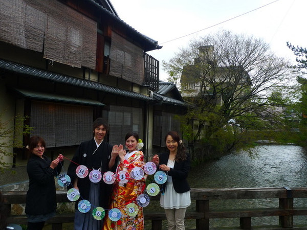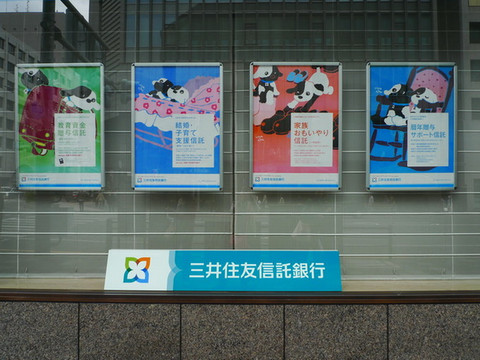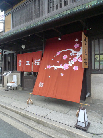 回到东寺前门乘207路巴士回祗园,207路在祗园四条通上有好几站,我们在河源町前几站下车的,然后步行到河源町,顺便看看路边的小店。这是一家银行的宣传海报,挺可爱的。