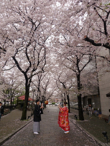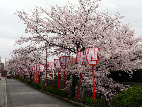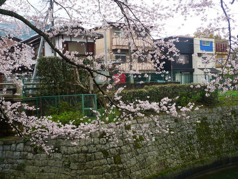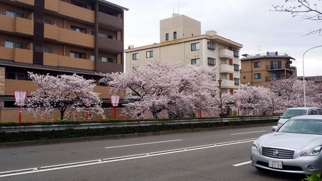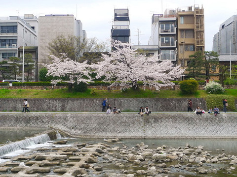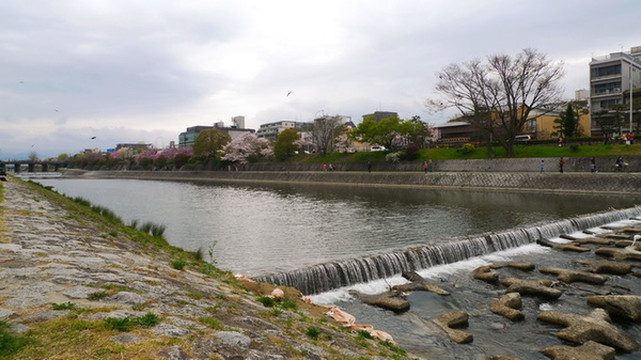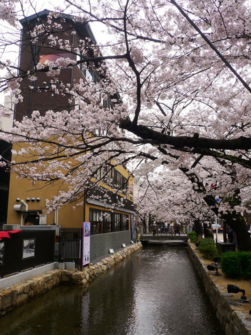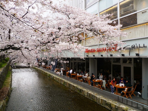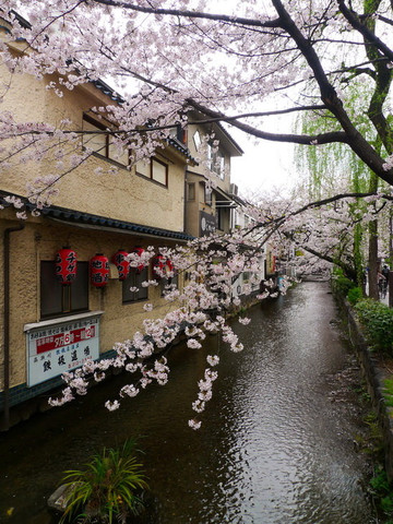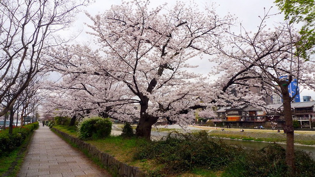 四条通另一边的溪水樱花