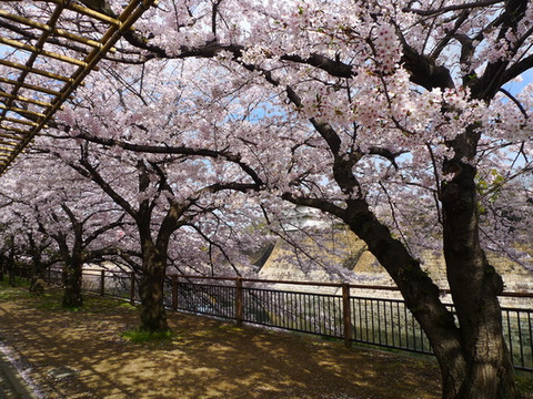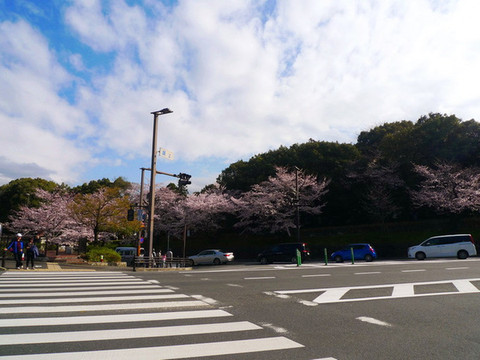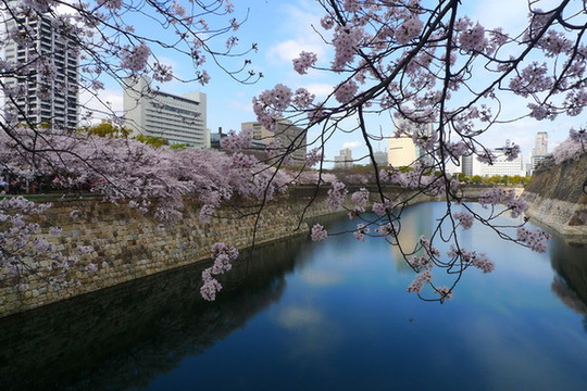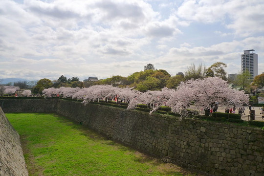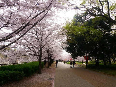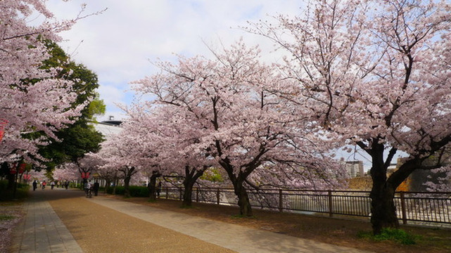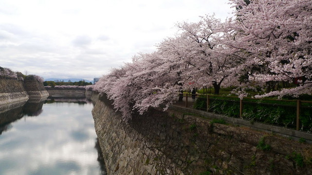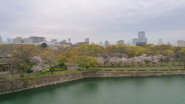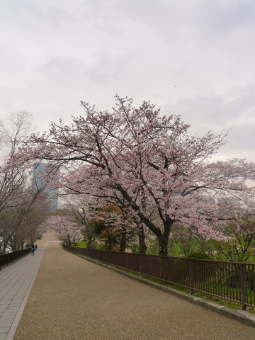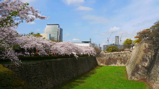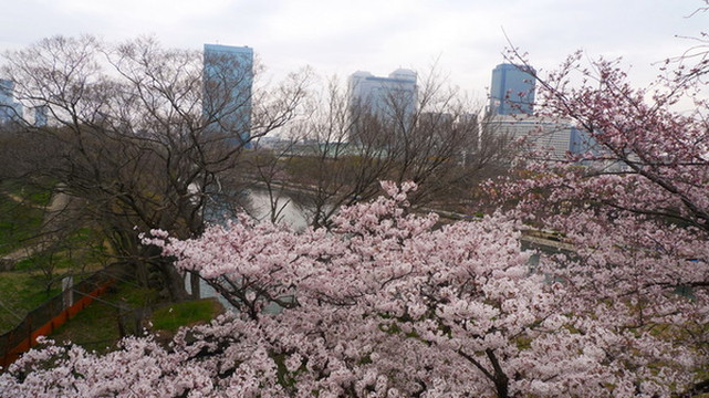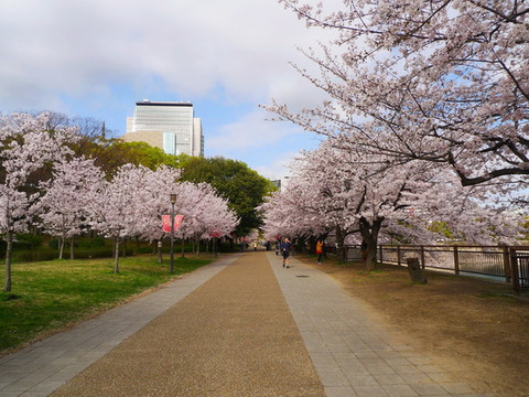 大阪城公园最漂亮的樱花道不是在公园的正门,而是在大阪警察局和NHK大楼附近的侧门,如果要用谷歌地图找的话先找到大阪警察局是最方便的。这儿因为不是旅行团大巴下车的地方,游客也较少。