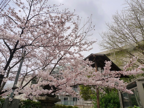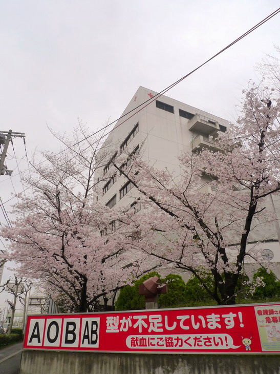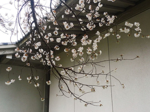 医院墙外的樱花树