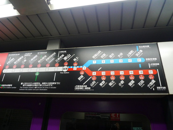 到地铁东山站乘东西线到醍醐站,注意东西线东向有两个终点站,要去醍醐站必须乘终点站是“六地藏”的那条,也就是下图红色的那条。单程290日元。