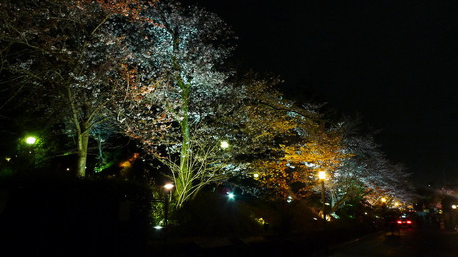 从街道的另一头拍,大爱这片夜樱!