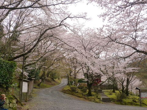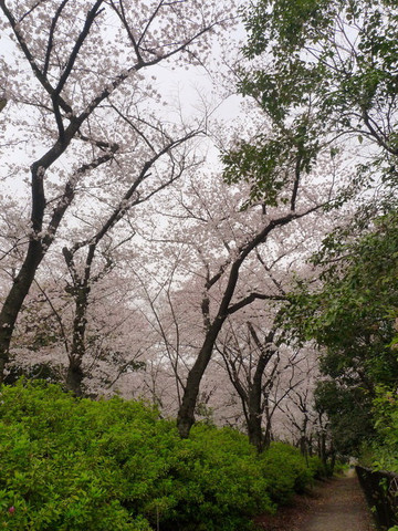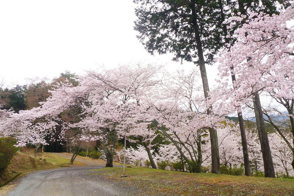 山道两旁都是遮天的樱花林
