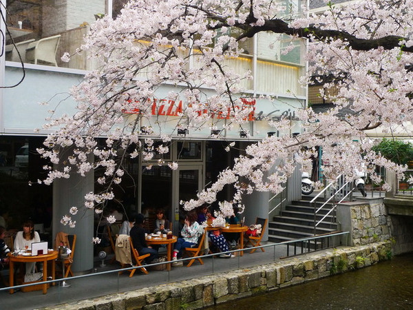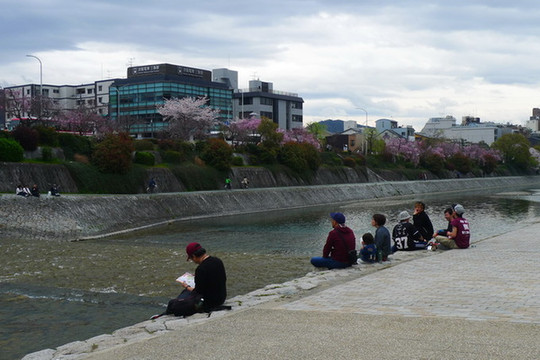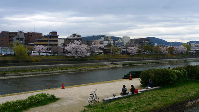 鸭川江边的樱花并不多,但坐在江堤边望着对岸的樱花也是一种情怀