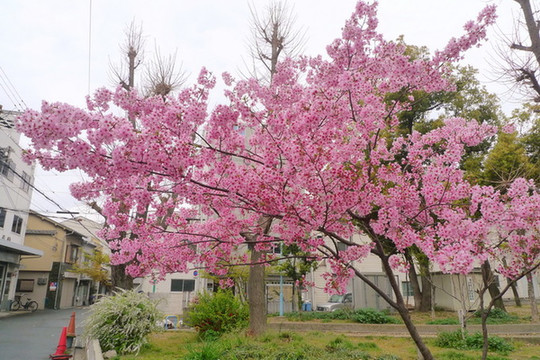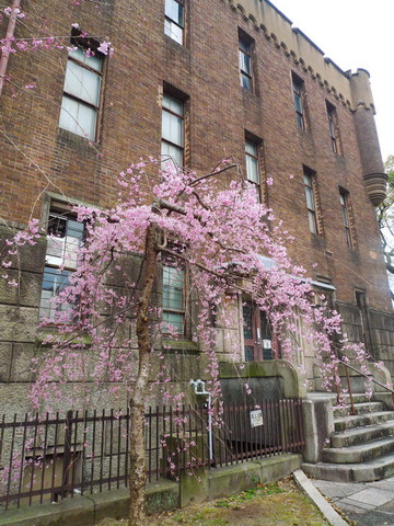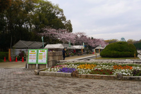 大阪城前博物馆边的一棵小垂樱。