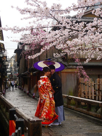 和服少女和樱花