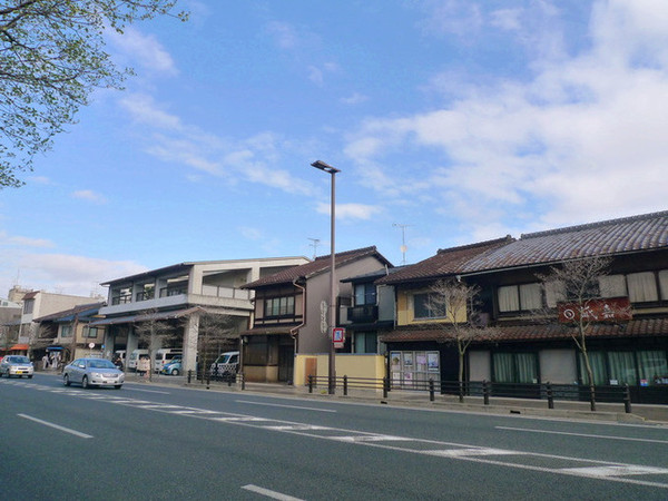 河源町纵向和江平行,在它西面两个路口处和四条通交界。河道两边种满樱花树,移步换景。