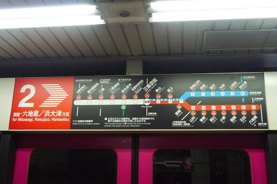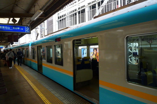 还是乘地铁东西线,从三条京阪站沿蓝色线路乘到底,也就是滨大津站。注意:蓝色线路不能用地铁一日票,我们那时不知道,不仅浪费了一日票还得在终点站补票,小小尴尬了一下。
