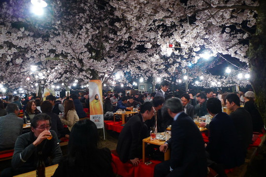 樱花树下的聚餐,气氛很好