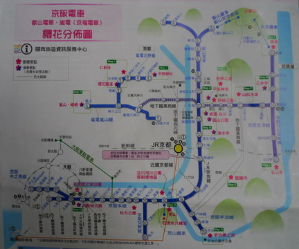 赏樱自由行的攻略比较简单,从下图上可以看出,京都的赏樱景点相对集中,酒店订在附近就可以很方便的以步行方式或一次交通抵达各景点。