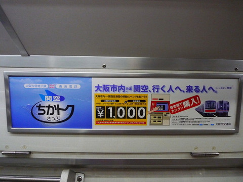 后来在地铁上有看到宣传广告介绍一种「関空ちかトクきっぷ(关空地铁套票)」,1000日元(如下图),此套票包含南海电铁特急车票及难波到其他地铁站的地铁票(不过好像必须在难波换乘,不能在其它站),那就很合算了,在自动贩卖机上就能购买。