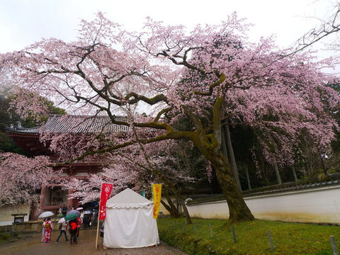 进门左手的这棵百年垂樱极为震撼,蔓延的枝杈,遮天垂地的粉色,感觉这已是棵树仙,奈何相机无法呈现。