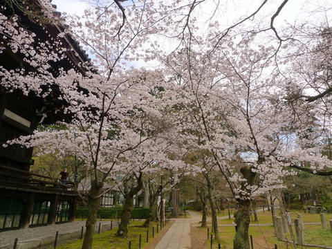 侧殿园内无需门票,也有几棵颇为繁茂的樱花树