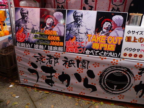 好像是个炸鸡摊?海报有意思