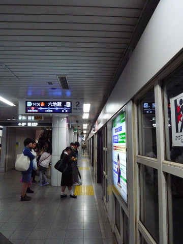 灯牌显示下一班地铁就是我们要乘的终点站是“六地藏”的那班。