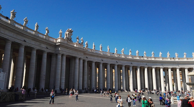 乘着大家在圣彼得广场环形圆柱廊下坐等集合的时候,我又与导游聊起梵蒂冈种种秩事起来。