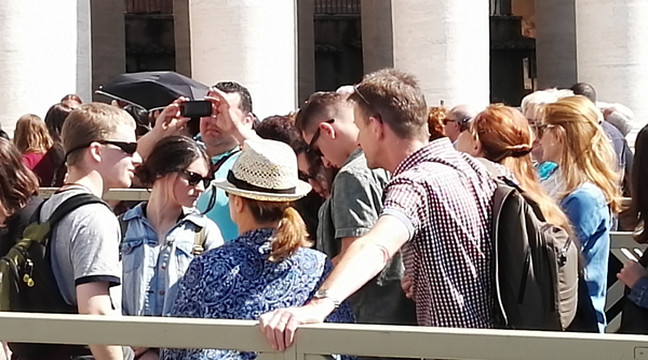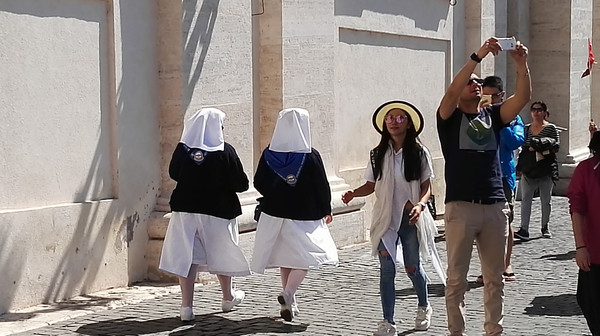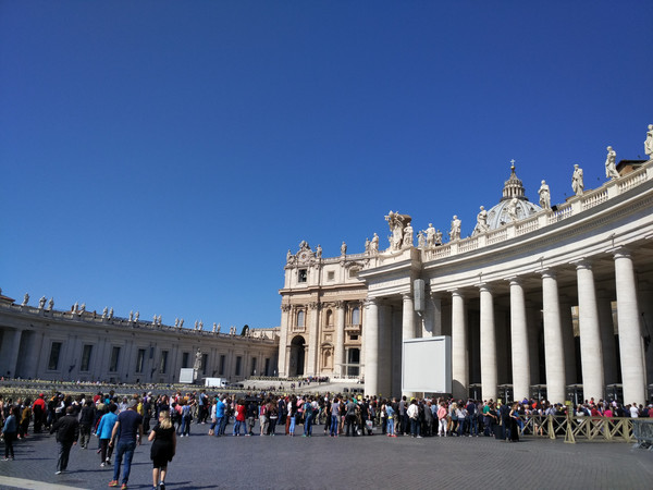 大概是约定俗成吧,顶着近午的烈日,不论种族肤色,大家都乖乖地在广场上排起了长队,期待着能早点进入圣彼得大教堂。
