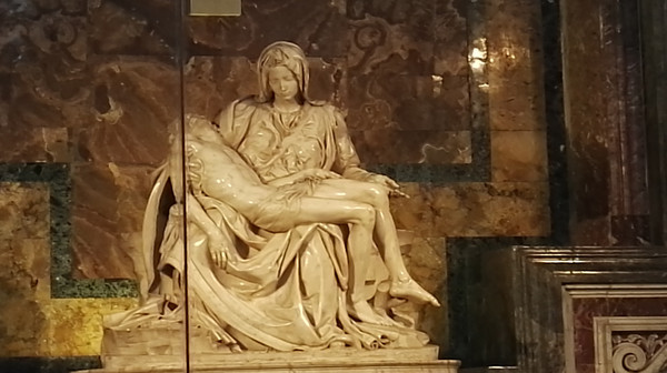 我赶忙找来了导游向她请教,才得知这座雕塑为米开朗基罗24岁时雕塑作品《圣母的哀痛》。