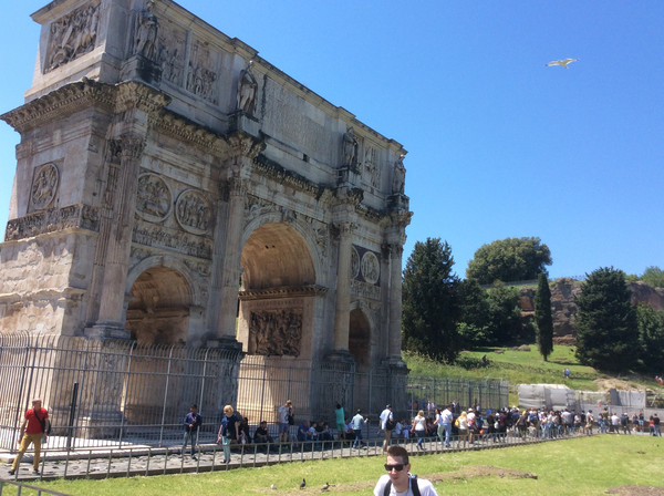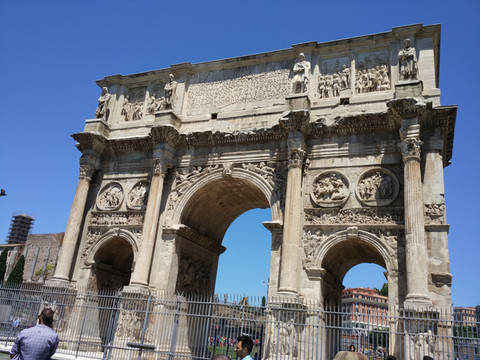 远远望去,斗兽场遗址与图片上一样,所以激不起我们多少兴趣,反而斗兽场遗址前的一座古罗马凯旋门令人十分惊奇,如果将几天后要见到的巴黎凯旋门也预算在内,迄今为止,我算是见过四座凯旋门了,印度新德里的德里凯旋门(新老德里分界,又有人称为印度门)、德国柏林凯旋门(勃兰登堡门)、眼前的罗马凯旋门、巴黎拿破仑凯旋门。
