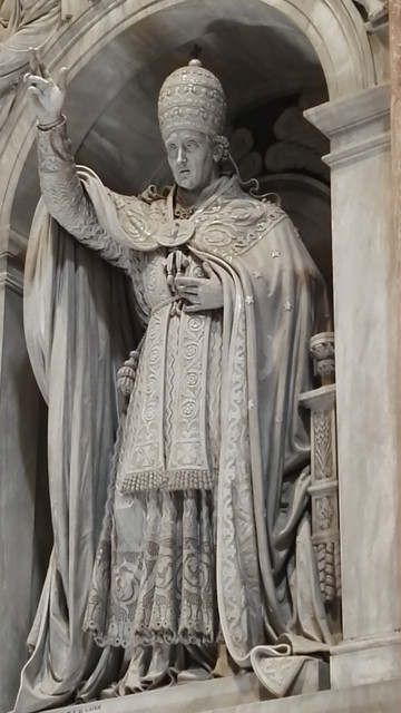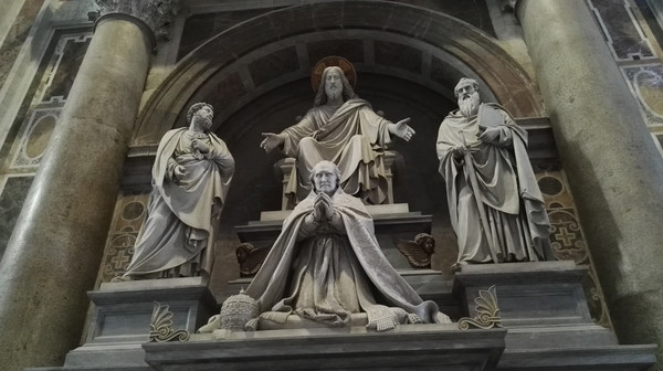 除此之外,大堂两侧几乎都是从古到今数十位教皇的祭台,上面的雕像也大都是其教皇本人的真容,有的严肃正经,有的忧心仲仲,有的则一脸奸诈……。